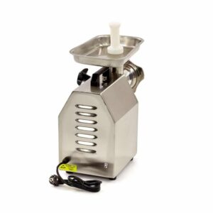 Der Maxima Fleischwolf MMM 22 ist ein leistungsfähiger und professioneller Fleischwolf mit Edelstahlgehäuse und -platte. Hinzu kommt, dass Schnecke und Schraubenring auch aus Edelstahl gemacht sind. Der Maxima Fleischwolf MMM 22 hat vier Gummifüße und ist somit gesichert gegen Verrutschen. Der Maxima Fleischwolf MMM22 ist leicht zu reinigen und das Hackteil ist abnehmbar in einem Stück.