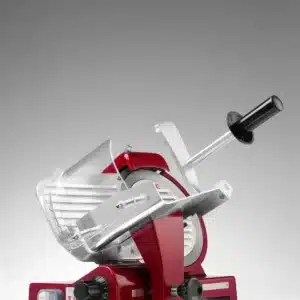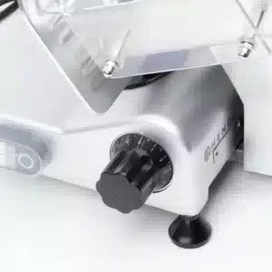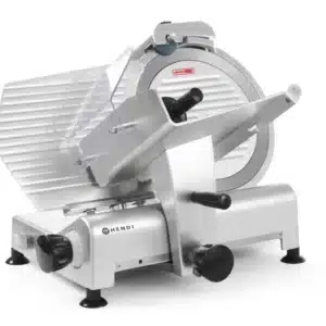 Produktgruppenbeschreibung:Für professionellen, gewerblichen Einsatz. Gehäuse aus beschichtetem Aluminium, mit rutschfesten Füßen. Schneidmesser aus gehärtetem nichtrostendem Stahl in schräger Stellung. Motor luftgekühlt mit Überhitzungssicherung. Hochleistungsmotor zum Schneiden von Wurstwaren. Die Aufschnittmaschine ist mit Messerschutz und integriertem Messerschärfer ausgestattet. Mit Schutzabdeckung sowie mit Restehalter und senkrechter Sperre. Möglichkeit schneller und einfacher Demontage zur Reinigung. Das Gerät entspricht sämtlichen Sicherheitsanforderungen an Geräte für gewerblichen Einsatz, d.h.: – Durch Einstellung des Drehgriffes auf Schnittbreite ‚0” wird das Messer hinter seinem Schutz gehalten. – Die Aufschnittmaschine ist gegen Betätigung nach der Entfernung des Messerschärfers oder des Achsschutzes abgesichert. – Das Gerät kann nur dann gesperrt und entfernt werden, wenn das Messer auf Schnittbreite ‚0” eingestellt wurde. Zum Schneiden von Käse nicht geeignet. Zum Schneiden von Käse werden die separat erhältlichen teflonbeschichteten Messer benötigt.