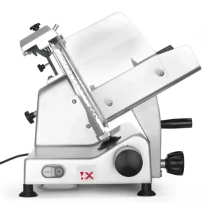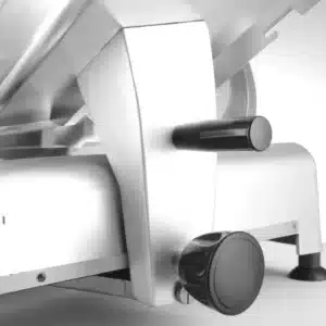 Produktgruppenbeschreibung:Für professionellen, gewerblichen Einsatz. Gehäuse aus beschichtetem Aluminium, mit rutschfesten Füßen. Schneidmesser aus gehärtetem nichtrostendem Stahl in schräger Stellung. Motor luftgekühlt mit Überhitzungssicherung. Hochleistungsmotor zum Schneiden von Wurstwaren. Die Aufschnittmaschine ist mit Messerschutz und integriertem Messerschärfer ausgestattet. Mit Schutzabdeckung sowie mit Restehalter und senkrechter Sperre. Möglichkeit schneller und einfacher Demontage zur Reinigung. Das Gerät entspricht sämtlichen Sicherheitsanforderungen an Geräte für gewerblichen Einsatz, d.h.: – Durch Einstellung des Drehgriffes auf Schnittbreite ‚0” wird das Messer hinter seinem Schutz gehalten. – Die Aufschnittmaschine ist gegen Betätigung nach der Entfernung des Messerschärfers oder des Achsschutzes abgesichert. – Das Gerät kann nur dann gesperrt und entfernt werden, wenn das Messer auf Schnittbreite ‚0” eingestellt wurde. Zum Schneiden von Käse nicht geeignet. Zum Schneiden von Käse werden die separat erhältlichen teflonbeschichteten Messer benötigt.